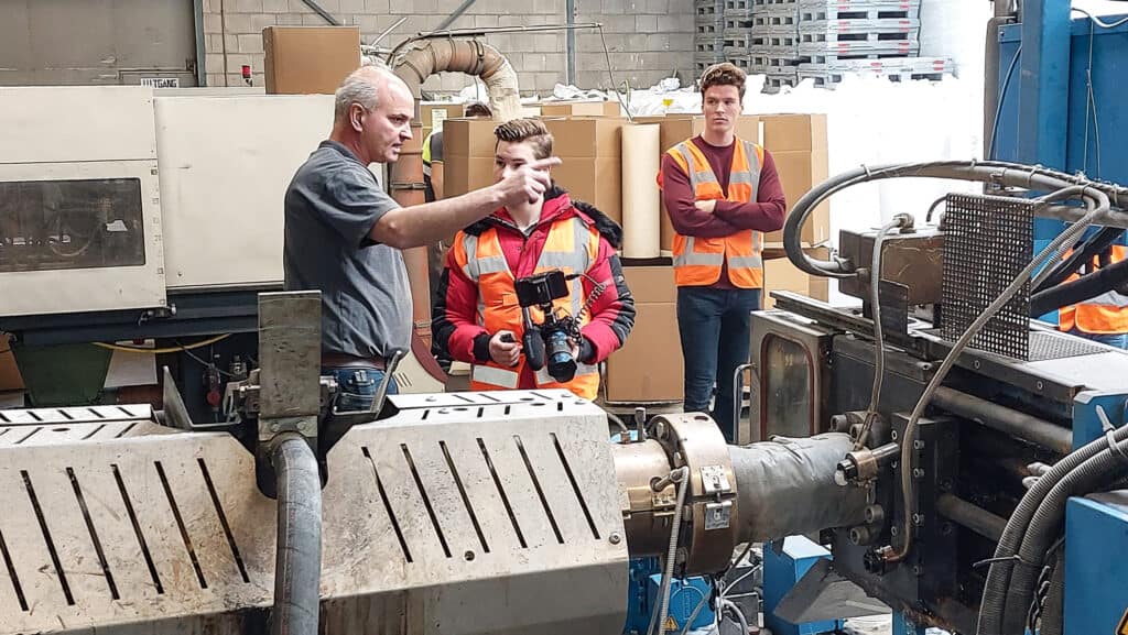 21 april 2023 | Maak een filmpje van de reis van cd naar kaarsenhouder. Zo luidt de opdracht van WaardeRing aan drie derdejaars studenten Media & Vormgeving van het Deltion College in Zwolle. Samen met projectleider Maarten van Dongen toogden studenten Luuk Notten, Rik Steenstra en Sven van de Venis naar MEWA Polymers in Schijndel en Van Uden kaarsen in Schijndel. Een reis vol innovatieve circulaire oplossingen, bevlogen mensen en nieuwe indrukken.