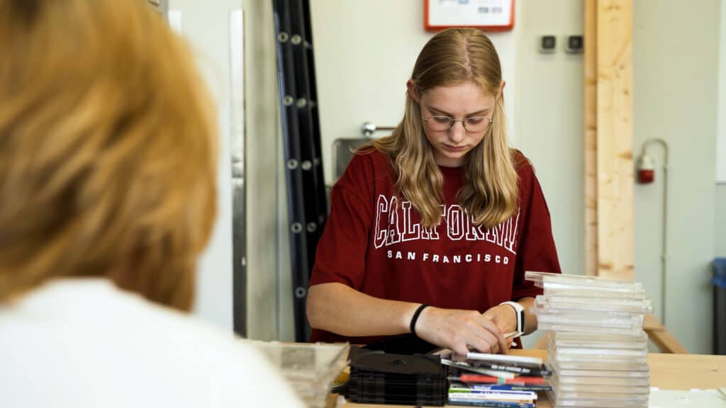 ‘Mensen die er goed in zijn om met hun handen te werken, zijn onmisbaar in een circulaire samenleving’, zegt directeur Wilma Voortman van de stichtingen Kringloop Zwolle en Noggus&Noggus. ‘Dat blijkt wel uit de cijfers die wij vorig jaar bijhielden. Maar liefst 12,5 ton materiaal ging vorig jaar door hun handen. Ze haalden cd’s en papier uit hoesjes, metaal uit ordners en ze ontmantelden schilderijlijstjes en klerenhangers om ze in aparte materiaalstromen te scheiden.’ Op die manier kan het materiaal makkelijk hergebruikt worden. Van de cd’s worden bijvoorbeeld kaarsenhoudertjes gemaakt. ‘Wij zijn heel blij met deze samenwerking met onze partners. Het is precies waar WaardeRing voor bedoeld is: kansen voor mensen en materialen.’