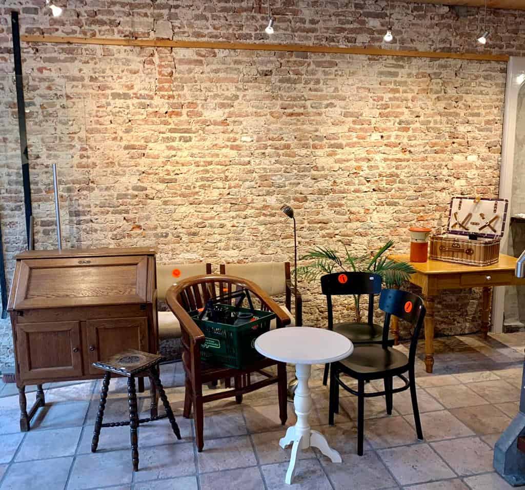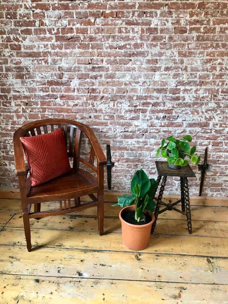 ‘Dat is ‘m, dacht ik toen ik een stoel tegenkwam’, vertelt Birte. ‘Verder zag ik een mooie secretaire, die in één van de kleinere ruimtes boven kan worden geplaatst. Je kunt er met je laptop aan werken, en je kunt ‘m dichtklappen als er bijvoorbeeld een overleg plaatsvindt. Dat is handiger dan een grote tafel. Dit soort dingen overleg ik met Menno.’ Ze kwam bij de kringloop voor het één en vertrok met het ander. ‘Zo werkt het gewoon. Je moet afwachten wat er aangeboden wordt.’ Kringloop Zwolle werkt graag mee. ‘Ik mag een lijstje ophangen met dingen die ik zoek en laten het weten als ze denken dat er iets is dat ik wel kan gebruiken. Daar ben ik heel blij mee.’ Birte is blij dat ze vooraf een moodboard, een materialenplan en een digitaal ontwerp heeft gemaakt. ‘Daardoor kan ik me ondanks de aanpassingen toch aan het oorspronkelijke plan houden. Door de goede voorbereiding weet ik precies wat er wel en niet in het totaalplaatje past. Het is wel heel fijn dat ik zo’n enthousiaste opdrachtgever heb, die me veel vrijheid geeft.’