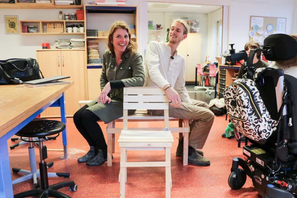 De intentie van Thijmen was om de leerlingen in ieder geval twee dingen mee te geven. ‘Ten eerste wilde ik ze vertellen over circulariteit: dat je oud materiaal weer heel goed opnieuw kunt gebruiken. En ten tweede wilde ik ze kennis laten maken met het vakmanschap van de meubelmaker. Het schuren, het boren, het schroeven. Hoeveel voldoening het kan geven om iets moois met de hand te maken. En dat merkte ik ook aan hen. Stuk voor stuk waren ze trots op het resultaat. Iedereen was superenthousiast en dat is heel motiverend.’