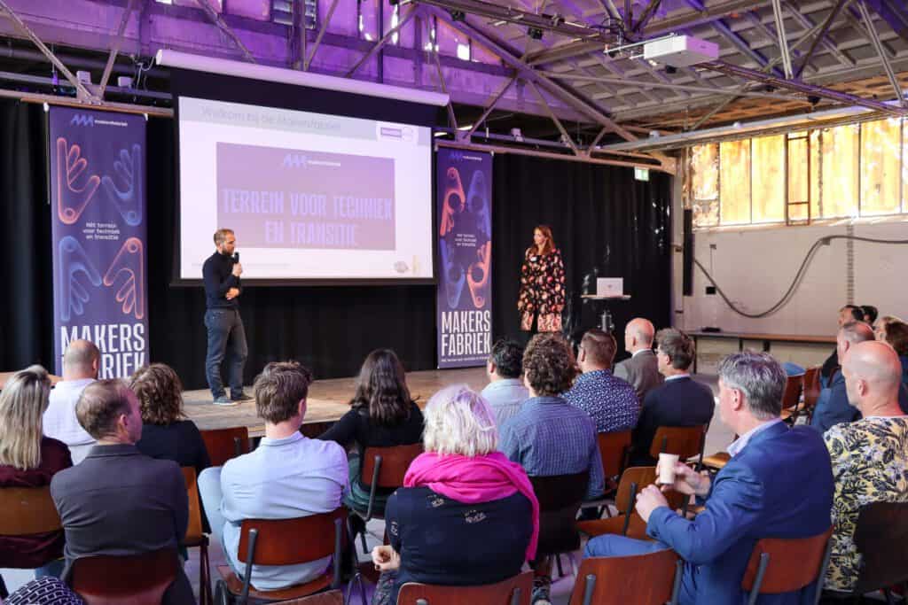 Tijdens het plenaire gedeelte en de tafelsessies per netwerk, ging het over samenwerken en elkaar inspireren en vooral ook gunnen. Over dóen en uitproberen in plaats van praten en plannen. Over groeien, versterken en het vormen van een circulaire community. Beleidsmedewerker van de gemeente Zwolle en mede-initiatiefnemer van Impact Oost Karin van Vilsteren-van Voorst leidde de bijeenkomst in goede banen. Ze kondigde gastheer en toekomstbouwer René Breman van de Makersfabriek als eerste aan. ‘De Makersfabriek is gevestigd op het oude Philipsterrein aan de Zwolse Ceintuurbaan, hét terrein voor techniek en transitie. We zijn hier in 2020 begonnen met onze Breman Academy, een jaar later trokken we in het oude ketelhuis. Nu is hier ook onze Makersfabriek gevestigd, met kantoren, lokalen, een lunchroom en een grote event ruimte. Wij hopen het clubhuis te kunnen zijn voor ondernemende mensen in een veranderende wereld, zodat we kennis en verhalen kunnen delen, elkaar kunnen uitdagen, inspireren en triggeren. We willen hier onverwachte ontmoetingen faciliteren en nieuwe kruisverbanden. In de Makersfabriek is altijd sprake van reuring, onverwachte dynamiek, vakmanschap en nog veel meer. Als je hier komt, weet je dat je bezig bent met de dag van morgen. Iedereen van harte welkom!’