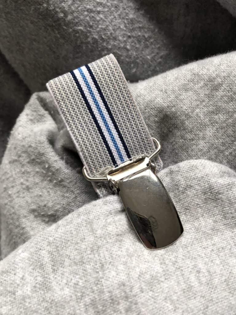 ‘Vorig jaar is mijn vader overleden. Ik bracht zijn kleding naar de kledingbank. Zoals ’t een oude heer betaamt, gebruikte hij bretels. Die heb ik kort afgeknipt en gebruik ik nu als dekbed-in-het-dekbedovertrek-op-z’n-plaats-houders! Want niets is zo vervelend als in de hoes rondzwervende dekbedden, vind ik persoonlijk. En het werkt perfect!’