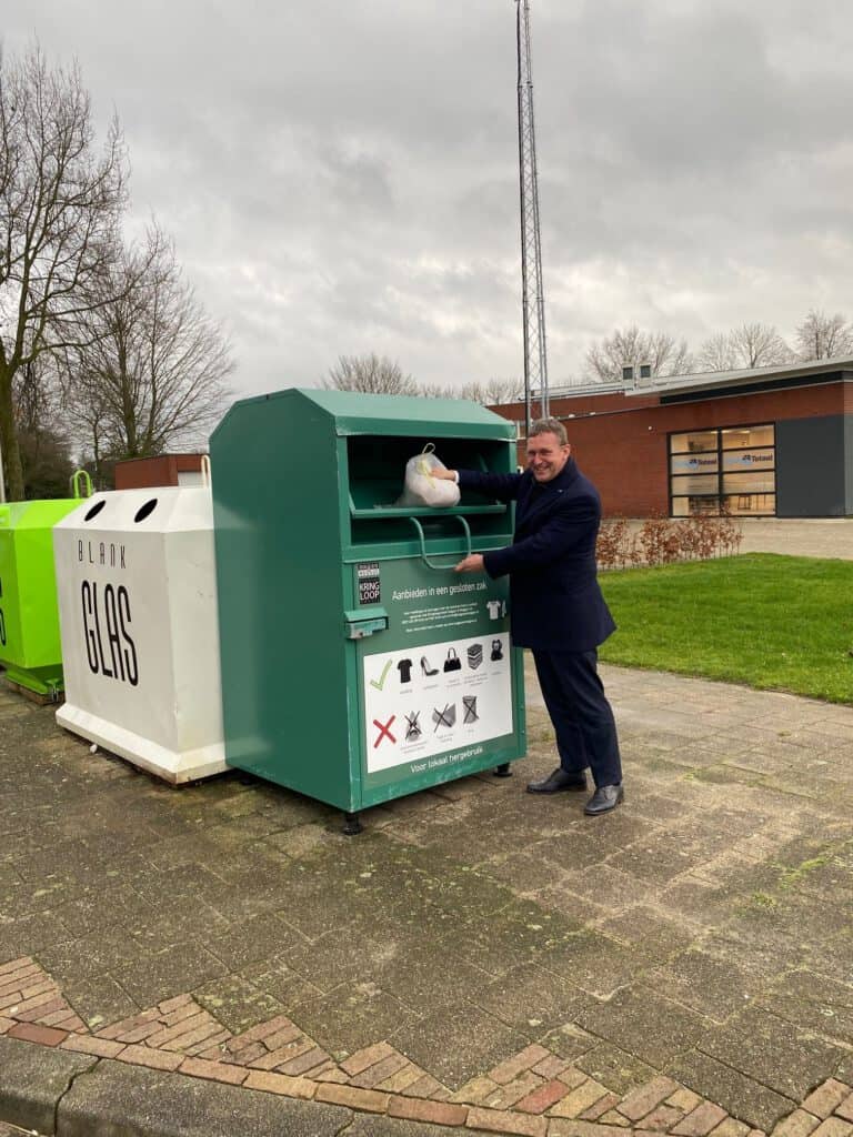 Het leuke is dat de textielcontainers zelf ook gerecycled zijn. Het zijn oude textielcontainers die door Noggus&Noggus in Staphorst zijn opgeknapt en een mooi kleurtje hebben gekregen. Afvalverwerker ROVA heeft de containers geplaatst.