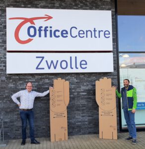 29 april 2021 | Wat doe je als kantoorartikelenspecialist met 6000 onverkoopbare kartonnen covid-schermen? Office Centre besloot ze weg te geven aan organisaties die ze goed kunnen gebruiken, en vond die in Zwolle onder andere bij de opleiding Industrieel Project Ontwerp (IPO) van Hogeschool Windesheim, partner van WaardeRing.