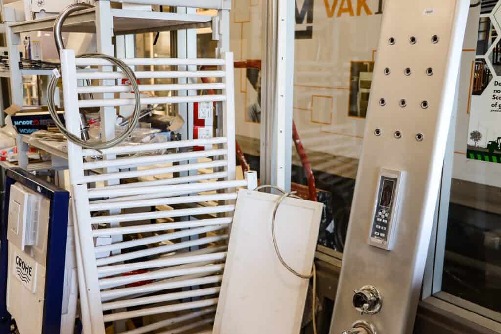 ‘We zijn niet alleen een sloopbedrijf of verkooppunt,’ vertelt Gerwin. ‘We zijn een plek waar mensen weer kunnen meedoen. Waar materialen weer mee mogen doen.’ De materialen in de hub en winkel komen uit sloopprojecten of zijn overschotten van bedrijven die moeten inkopen in bulk. ‘Laatst konden we drie pallets met minigardens en plantenbakken overnemen, overgebleven uit een bulkpartij. Ze gaan hier nu als warme broodjes over de toonbank.’