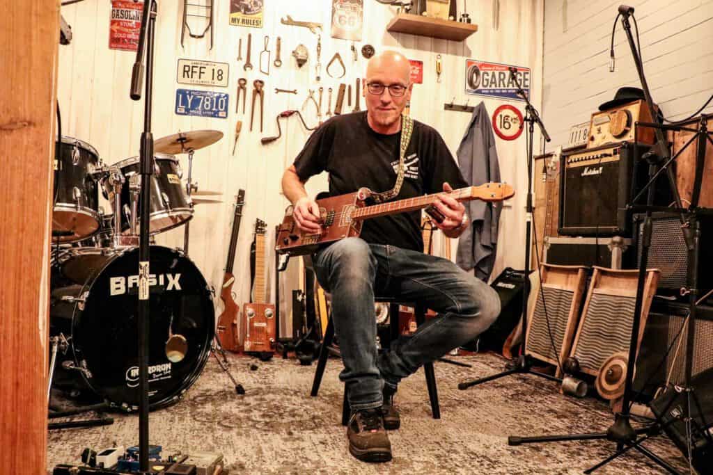 9 juli 2021 | Wat is de overeenkomst tussen een wieldop van een Daf 33, een oude klomp en sigarendozen in allerlei soorten en maten? Henri Grootenhuis aka Cigarbox Henri weet van dergelijke en veel meer andere materialen een cigar box gitaar te maken en ze ook nog eens virtuoos te bespelen. De kracht van die gitaren is niet alleen dat ze door een man met passie gemaakt zijn, maar ook dat ze stuk voor stuk een verhaal hebben. Zoals alle spullen in die heel bijzondere ruimte met studio in dat mooie stukje Dalfsen. Als je daar over de drempel gaat, stap je zeventig jaar terug in de tijd…