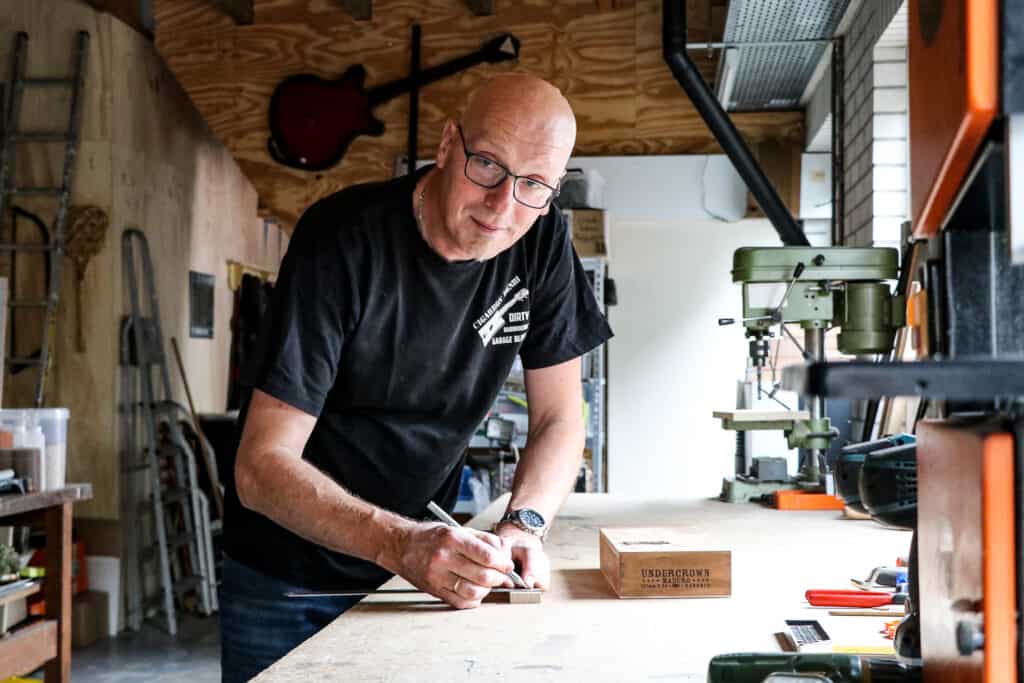 Dat was goed geregeld. Maar inmiddels was onze nieuwsgierigheid gewekt. Hoe zit dat met die cigar box gitaren, hoe worden ze gemaakt en wat heeft Cigarbox Henri met duurzaamheid? Op naar Dalfsen, waar de koffie al klaar stond.