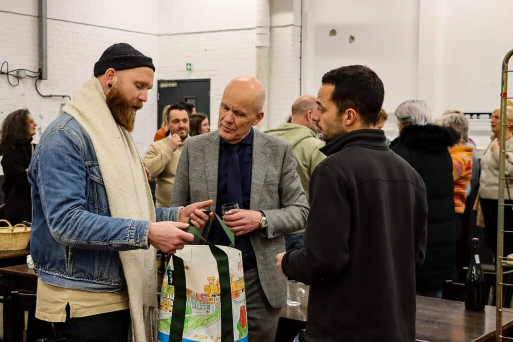 18 maart 2025 | Ondanks de drukke tijden -met onder andere de Week van de Circulaire Economie in aantocht- was er een goede opkomst bij de Partnerbijeenkomst in de nieuwe vestiging van Kringloop Zwolle aan de Ceintuurbaan, donderdag 13 maart. Het programma omvatte WaardeRing-updates en een presentatie van directeur Wilma Voortman van Stichting Kringloop Zwolle en directeur Auke van der Hoek van de KringCoop, een coöperatie van en voor kringloopbedrijven met het doel de textielketen meer circulair te maken. Vervolgens was er een rondleiding door het nieuwe kringloopwarenhuis. Daarna kon men naar hartenlust netwerken. Belangstellenden zijn altijd welkom bij de partnerbijeenkomsten van WaardeRing. Dit kee r namen ambachtelijke tassenmaker Silvera Jans, programmamanager Gertjan Bervoets, projectleider jongeren in kwetsbare positie bij Landstede MBO en Marleen Zomerdijk van Dagbesteding Paperclip een kijkje.