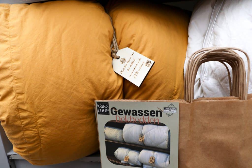 De klanten zijn enthousiast, al moeten sommige van hen nog aan het idee wennen. ‘In een hotel slaap je als het ware ook onder tweedehands dekbedden, daarom neem ik altijd mijn eigen spullen mee’, zegt Miranda. ‘Maar ja, ik sta heel erg achter recycling en ik koop hier ook mijn tweedehands kleding. Dus als het professioneel gereinigd is, ga ik er wel over nadenken. Ik vind het een goed initiatief.’ Klant An heeft al een donzen dekbed gekocht. ‘Ik vind het een geweldig idee en een leuke actie. En als het van Kringloop Zwolle is, weet je dat het goed en zorgvuldig wordt aangepakt. Bovendien is het heel mooi gepresenteerd.’ Ook klant Alma ziet het wel zitten. ‘Normaal zijn die dekbedden hartstikke duur. Dus ik vind het een top-idee van Kringloop Zwolle. Ze zien er goed uit, ze ruiken lekker, ik denk wel dat het heel goed slaapt!’