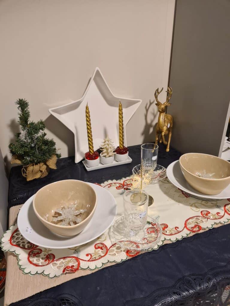 De kerstsfeer is er, evenals de kringloopvibe. ‘We werken met donkere oude kasten waarin de kerstproducten goed tot hun recht komen. En we houden ook gewone kringloopprijzen aan: vier kerstballen voor een euro, en kaarsenstandaards voor twee euro bijvoorbeeld.’ Er is van alles te vinden in de Kerst Pop-up: kerstbomen, een kerstdorp, kaarsen en een photobooth waar klanten hun kerstfoto kunnen maken. Volgens Eline zijn de mensen toe aan zo’n winkel. ‘Kerst staat bekend om verbondenheid en gezelligheid, daar is volop behoefte aan.’ Studenten van hogeschool Windesheim hebben geholpen. Ze hebben decorstukken gemaakt en onderzoek gedaan naar de behoeften van niet christelijke georiënteerde medemensen. ‘We gaan voor inclusiviteit, iedereen hoort erbij. Daarom hebben we bijvoorbeeld ook serviesgoed en winterspullen zoals sneeuwmannetjes en puzzels.’