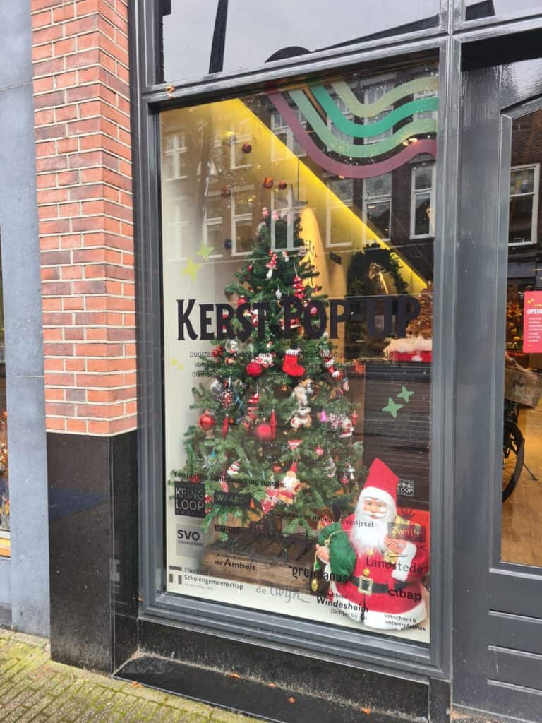‘Hé, een kerstwinkel, daar wil ik heen!’ roept een meisje. Winkelend publiek rammelt al geregeld aan de deuren van de nieuwe Kerst Pop-up. ‘Logisch’, vindt Eline, die zich behalve met de marketing en communicatie ook met de inrichting van de winkel bezighoudt. ‘We zijn de eerste kerstwinkel van Zwolle. We zijn de eerste winkel met alleen tweedehands artikelen in de Diezerstraat. En we zijn de eerste winkel die volledig wordt gerund door leerlingen en studenten. Mensen willen dit gewoon zien en ervaren! Dat blijkt nu al: we zorgen voor veel reuring.’ Ze kunnen er bijna terecht: vanaf 26 oktober is de Kerst Pop-up voor het publiek geopend.