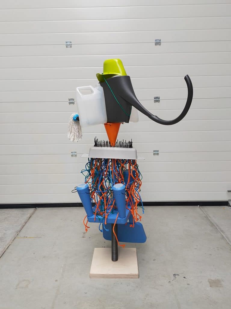 Visser & Meijwaard, studenten van WaardeRing-partner vakschool voor vormgeving Cibap, maakten een totem voor een nieuwe, fictieve cultuur. Tijdens de workshop gingen ze op zoek naar een gevoel van inspiratie en betekenis zoals we die kennen uit oude culturen en religieuze artefacten waarin alledaagse vormen en materialen worden gecombineerd met traditionele ambachten.